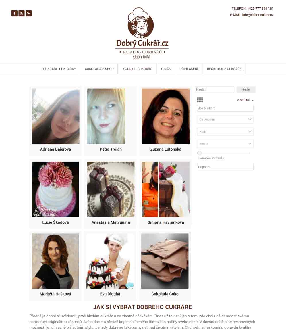 Looks Databáze cukrářů 5 září, 2016 Žádné komentáře Databáze a katalog cukrářů. Registrace přes sociální sítě, tvorba vlastních profilů. www.dobry-cukrar.cz