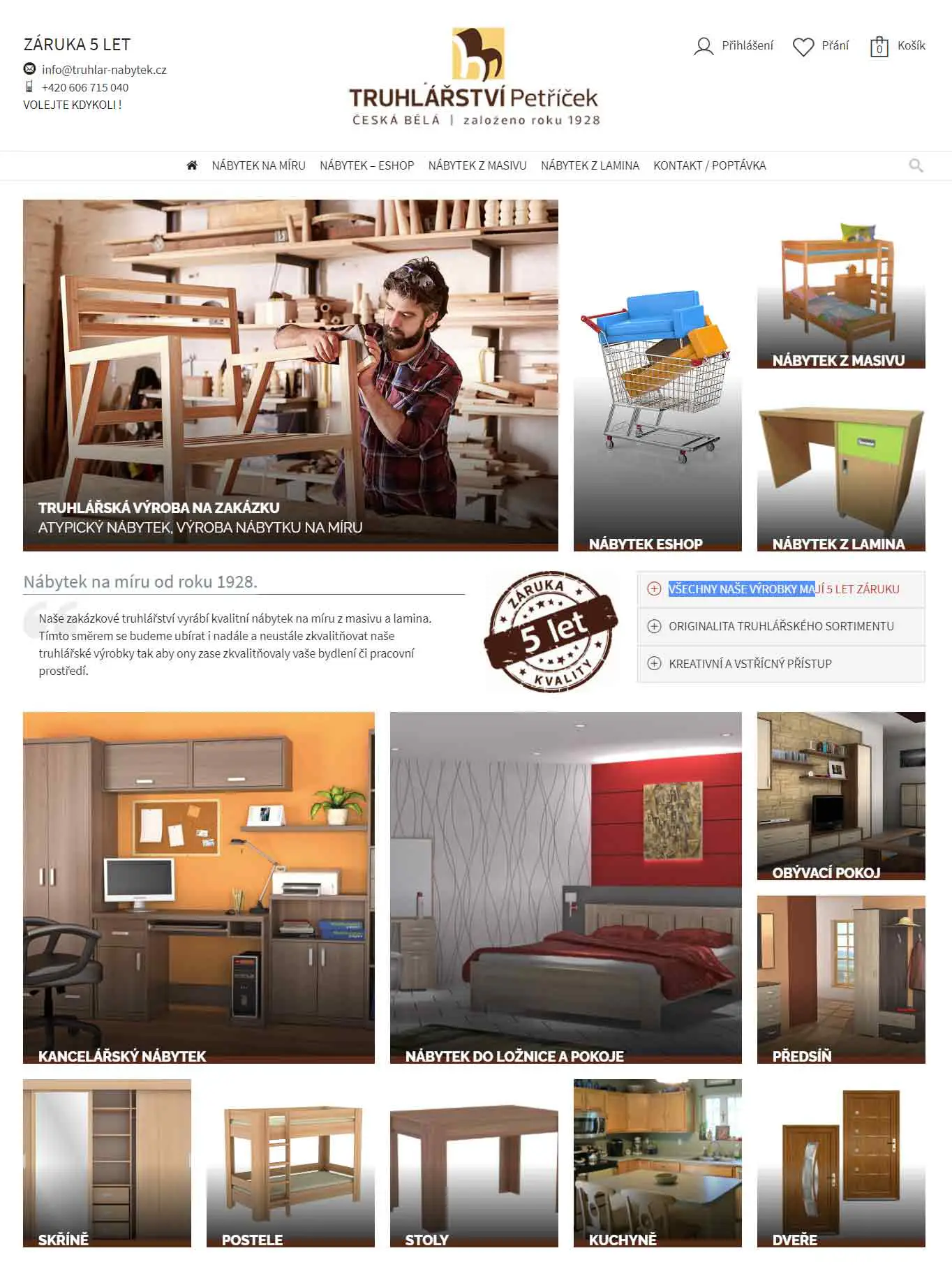 Web Truhlar-Nabytek.cz jsme vytvořili jako přehlednou a profesionální prezentaci truhlářské výroby nábytku na míru. Stránky jasně komunikují nabídku služeb – od kuchyní a vestavěných skříní až po atypický nábytek – a kladou důraz na kvalitu řemesla a reálné realizace.